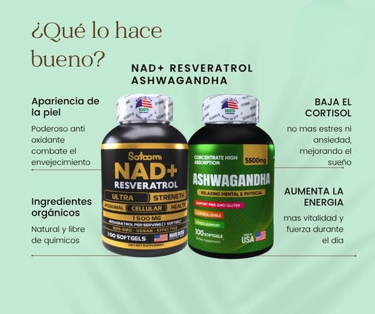 🧠🔥 Combo Potencia Celular + Estrés Bajo: NAD+ Resveratrol + Ashwagandha KSM-66🍃